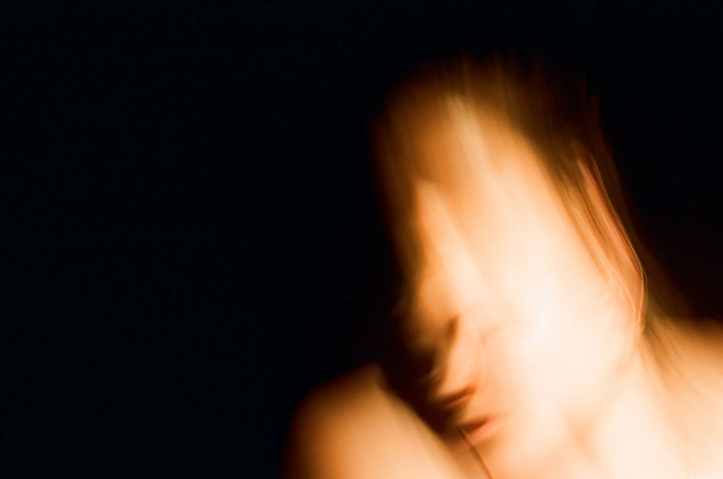 The photographer might also try shooting at a slow shudder-speed to elicit the effect of a body moving through space and time. Visually, this effect stretches not just the body, but the skin, rendering its sweat glands and porous holes a size bigger. The viewer might sense a hint of body dysmorphia when thinking about their own pores exuding their width and how it must feel for seepage to leak out. Of course, this really only tends to happen when the body is overheated, so heat is further accentuated in the image. Combined with the faint hint of sweat dripping off the dancer’s body and the exasperated expression of her face, the viewer might be convinced that what they are looking at and what they are feeling are, indeed, hot.